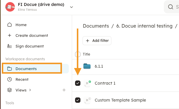 1. Go to Documents and select the documents you want to download by using the multi select tool.