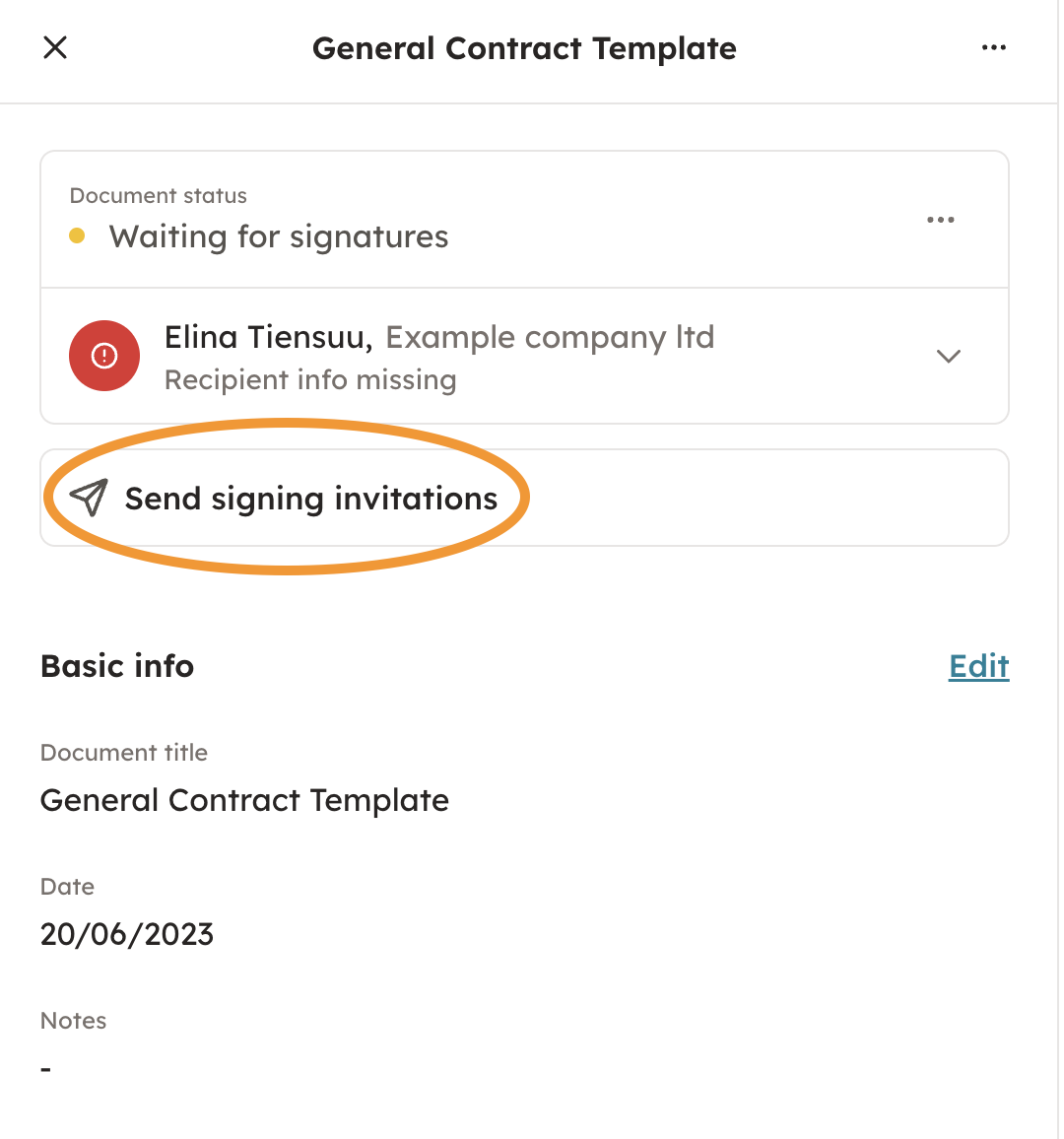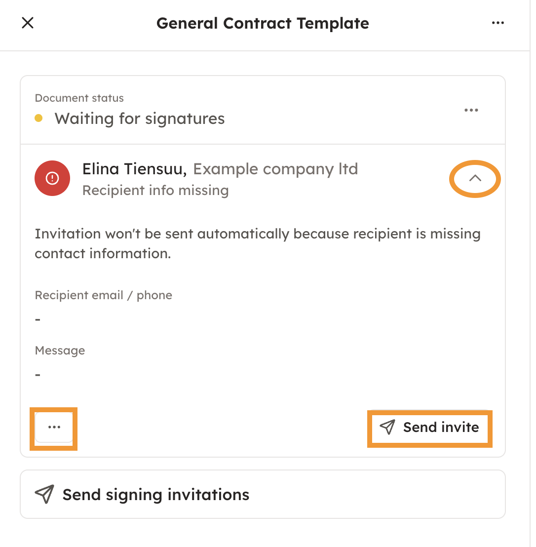 Invite the other parties to sign by clicking "Send signing invitations". Signing invitations can be sent by email or by text message.