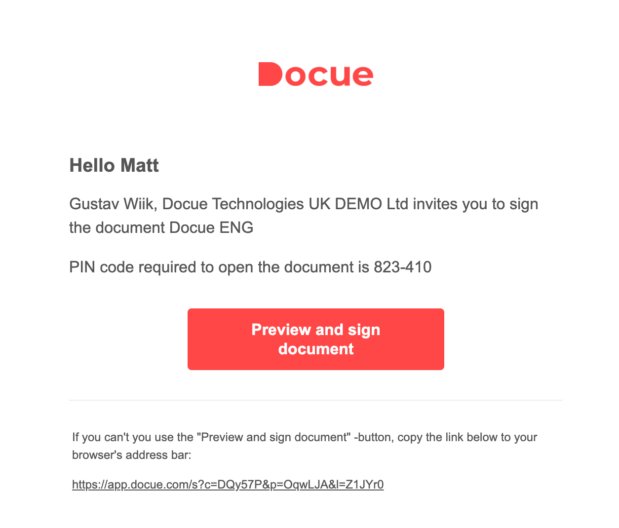 Below is what a regular signing invite looks like: