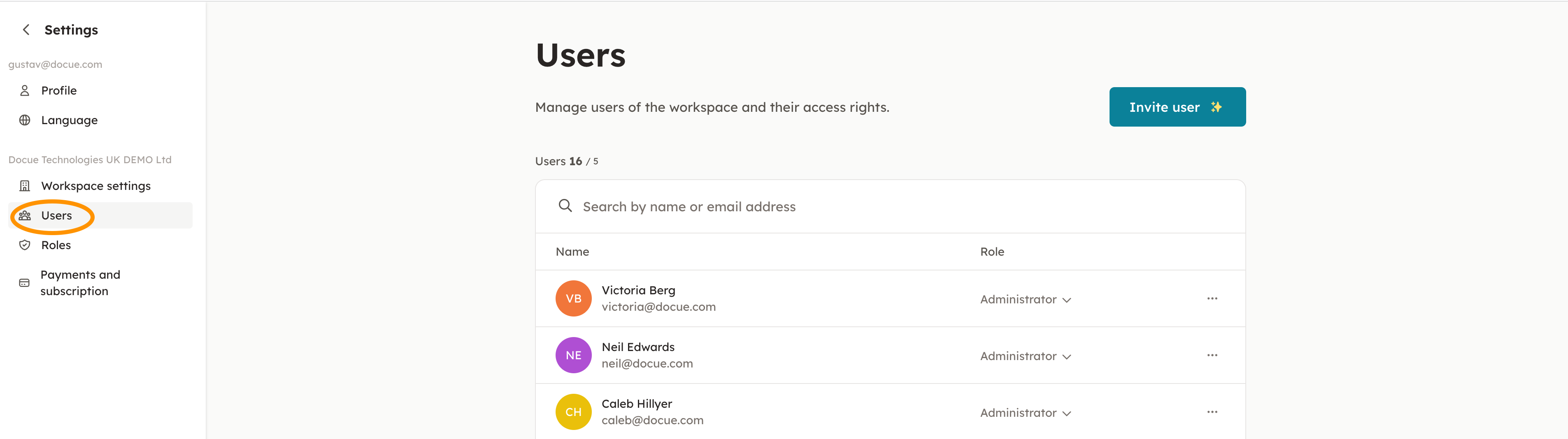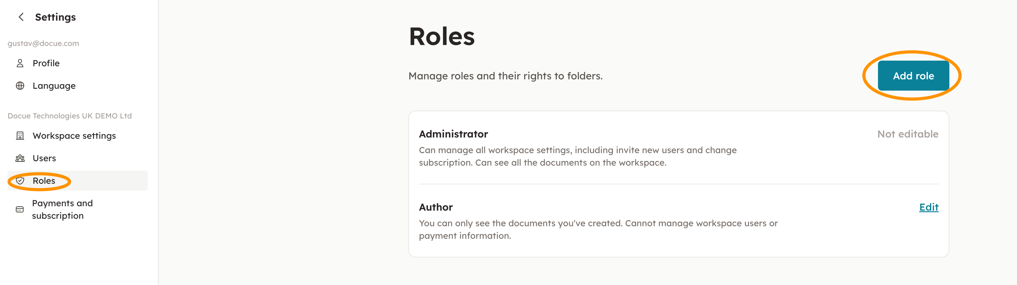If you don't want all of your Docue account users to have the same rights to see and edit documents in the service, we recommend restricting rights by creating different user roles.