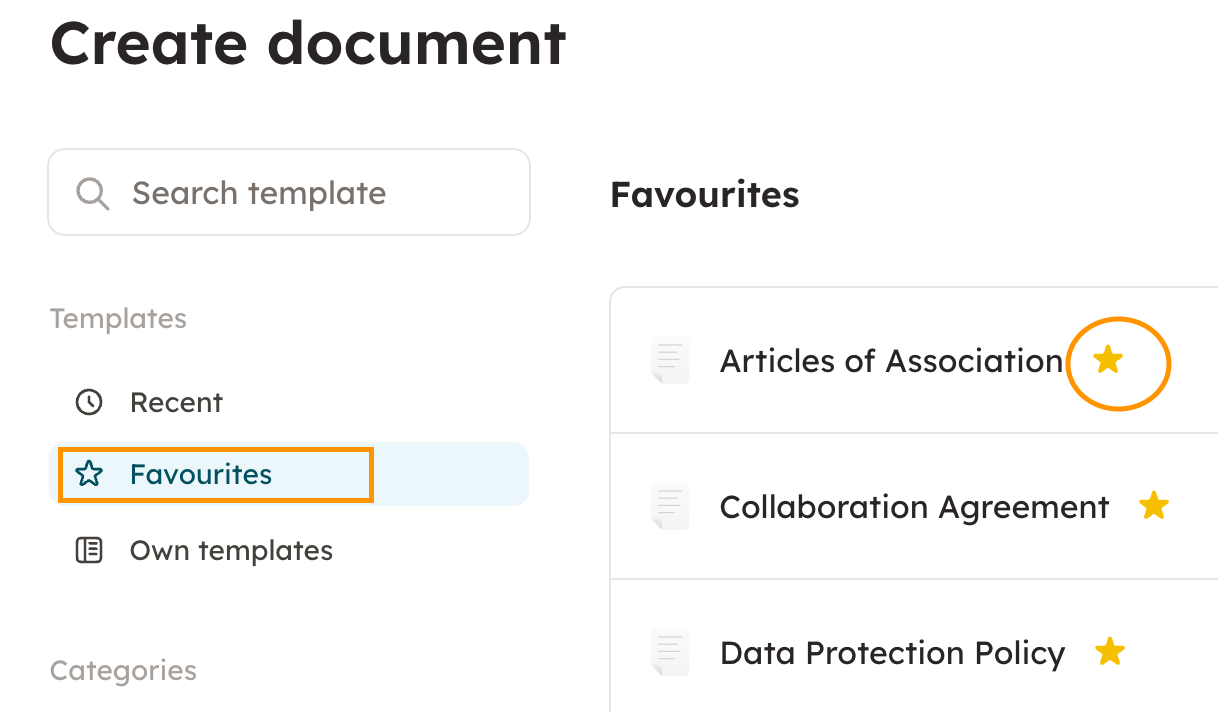 You can add a template to favourites by marking it with a star.