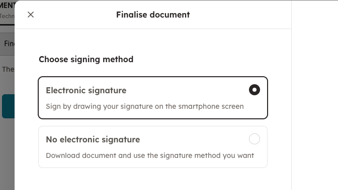 In the platform you can choose between e-signing or traditional signing. Both signature methods are legally valid. In this article we'll go through the electric signing.