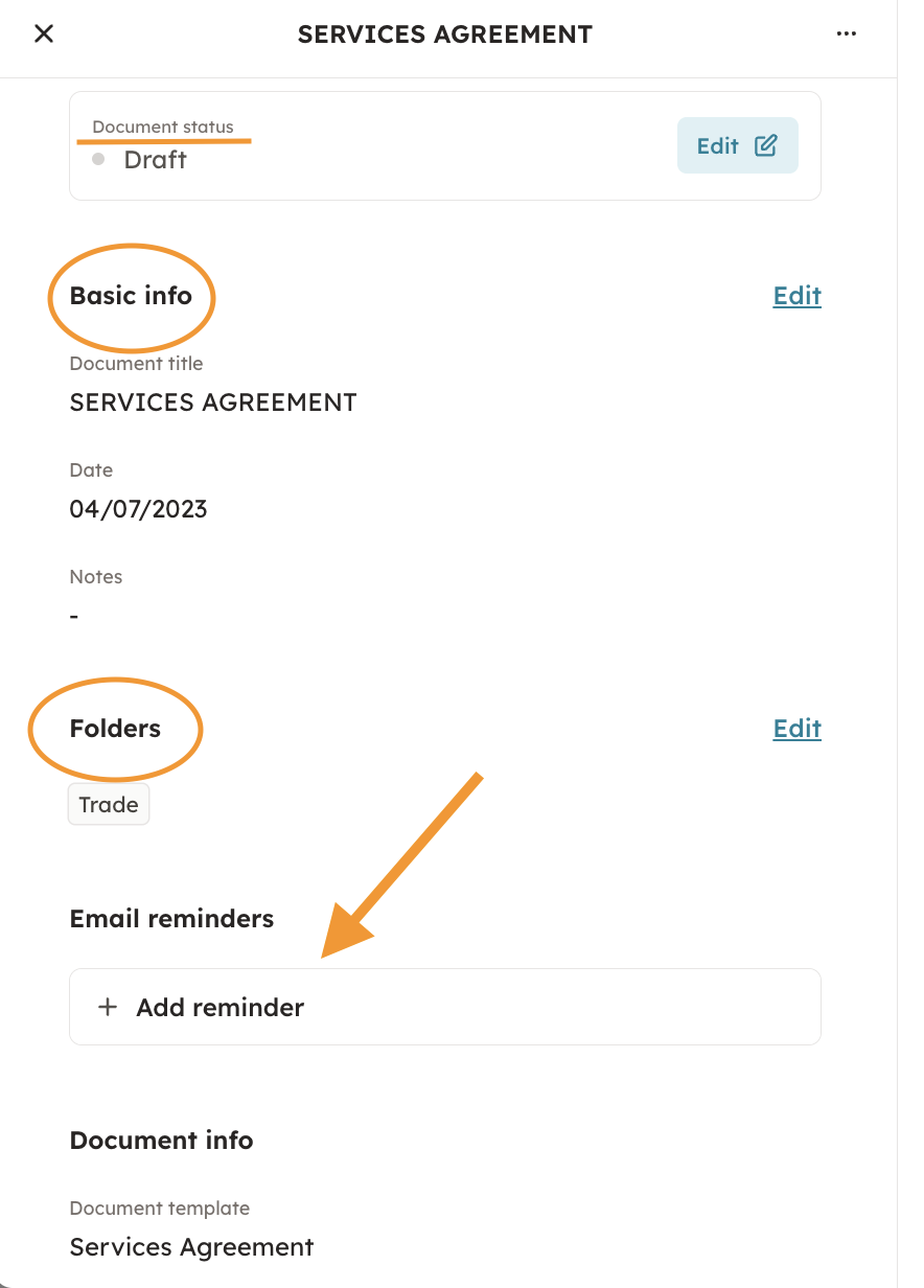 By editing Basic info, you can change the document's archive name, and add notes.