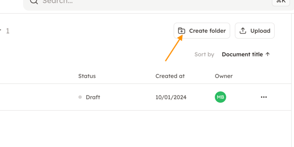 Click on "Documents" in the left column and then on "Create folder" in the upper right corner. You will then get a new box where you can name your new folder.