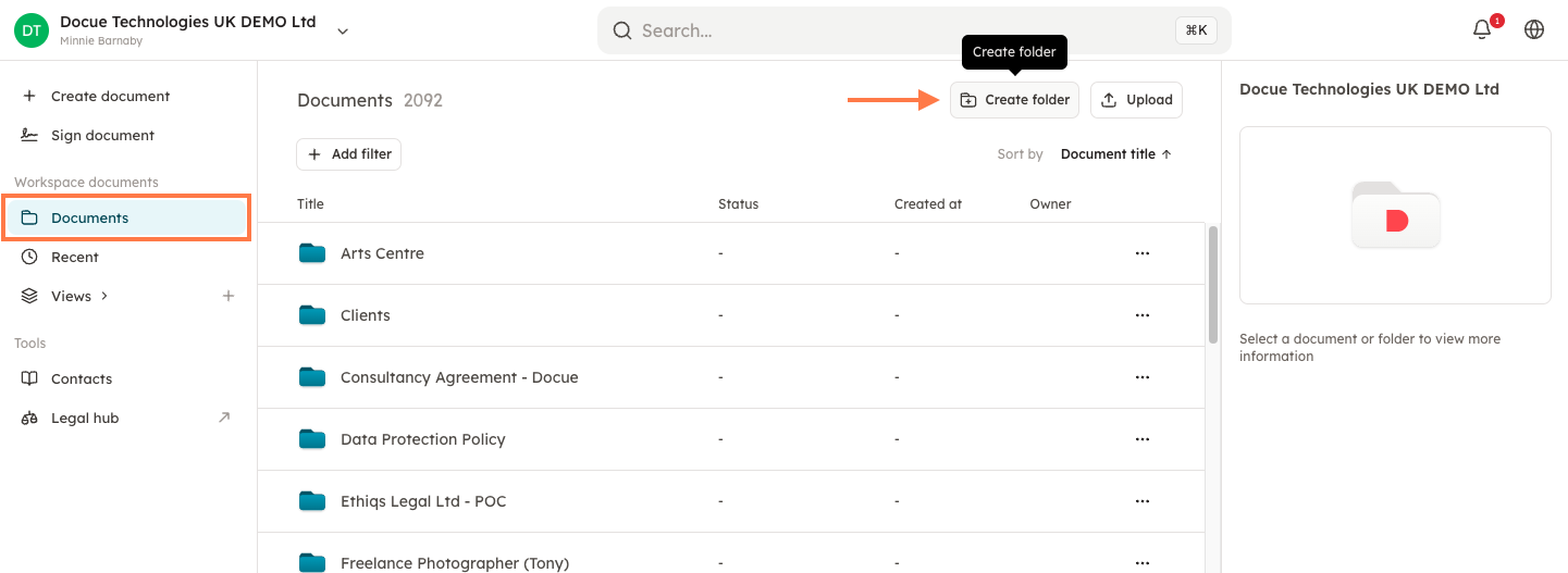 Creating folders in Docue Drive