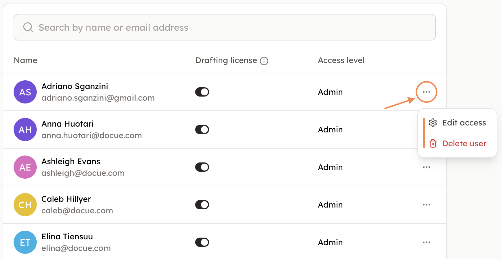 If you wish to change a users access at a later stage you and easily do that by going to your account settings > Users, and then click the three dots next to the users name. Here you can click "Edit access" to edit the users access to certain folders or you can even delete a user by clicking "Delete user".