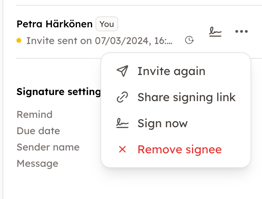 Remove a signee **Note: Removing a signee is only possible with a touch screen signature).