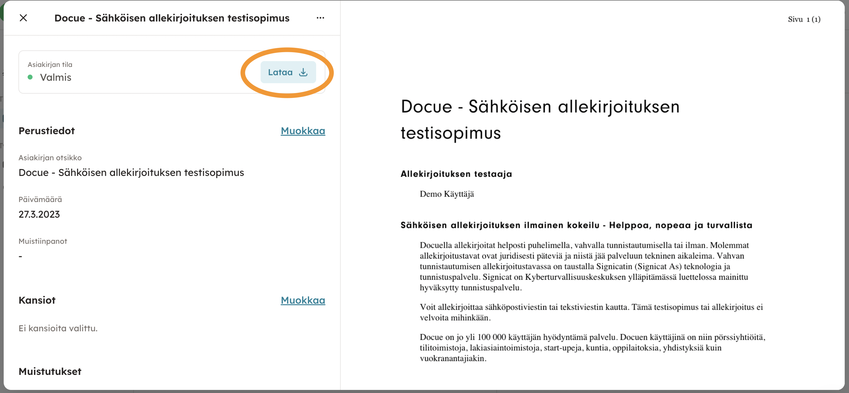 3. Lataa valmis asiakirja PDF:nä ja tulosta se omalta laitteeltasi.