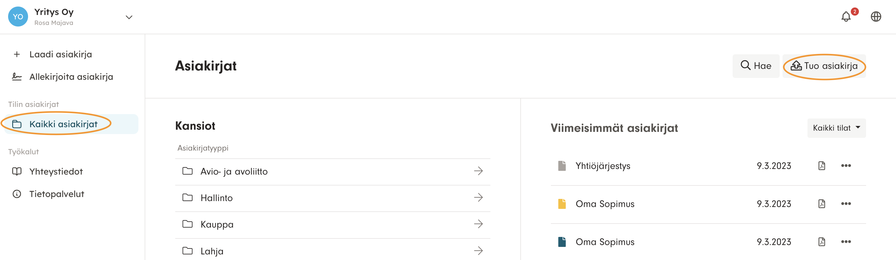 Voit tuoda suojattuun Kaikki asiakirjat -osioon rajattoman määrän myös muualla luotuja PDF-tiedostoja. Tällä hetkellä palvelu ei tue muita kuin PDF-tiedostomuotoja.