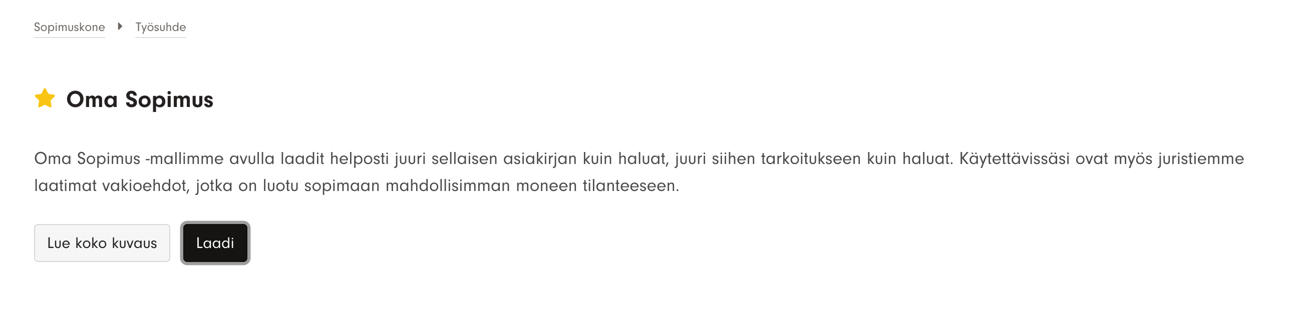 Valmiiden asiakirjamallien piilotuksen jälkeen yritystilillä on näkyvillä ainoastaan suosikeiksi ja omiksi asiakirjamalleiksi tallennetut mallit.