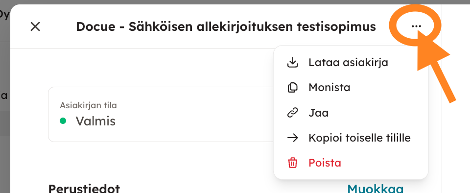 Kopioi toiselle tilille ➡️ Jos sinulla on käyttöoikeus useampaan tiliin, pystyt kopioimaan valmiita asiakirjoja tililtä toiselle