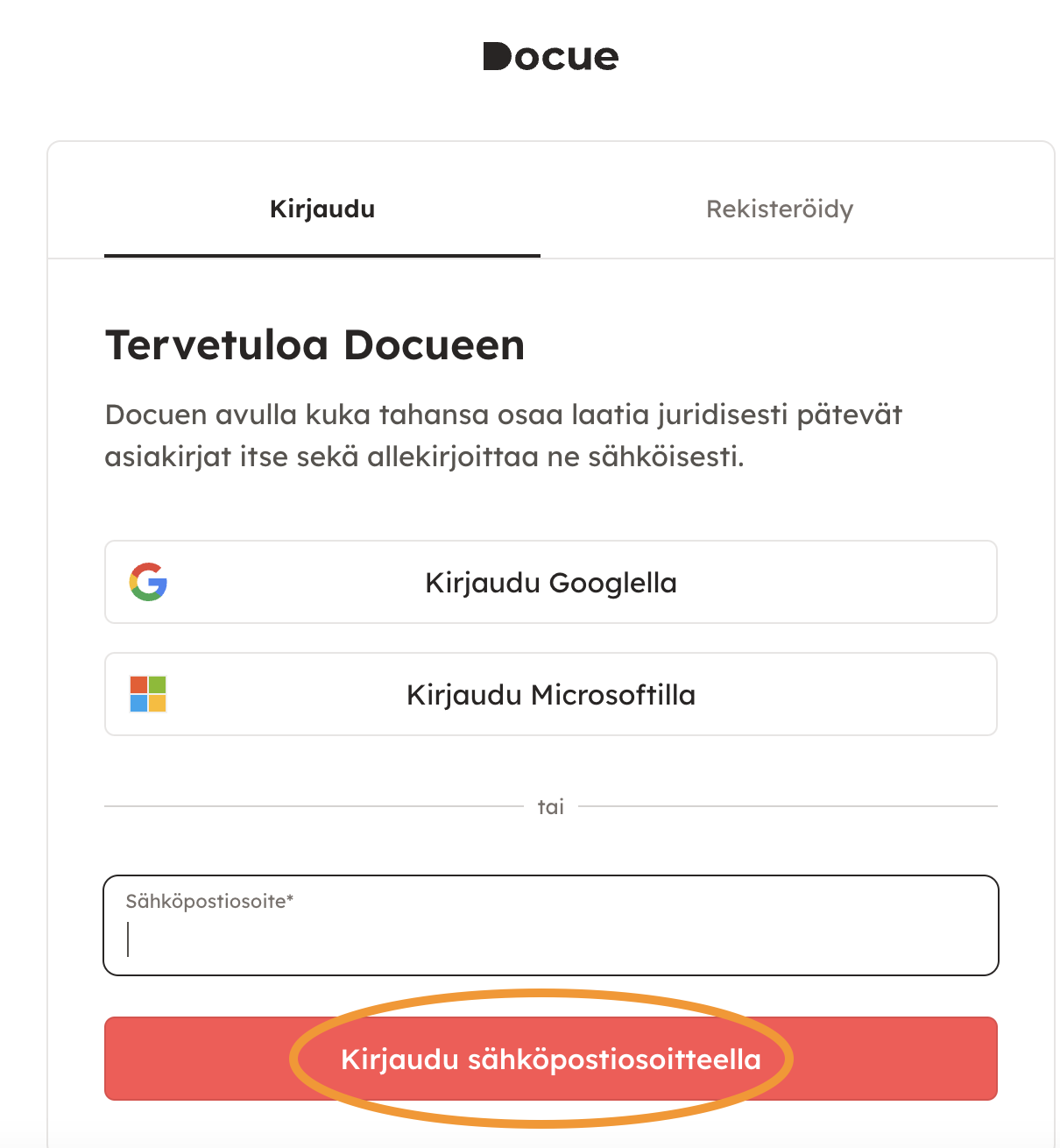 Täytä sen jälkeen sähköpostiosoitteesi ja jatka klikkaamalla "kirjaudu sähköpostiosoitteella" -nappia.