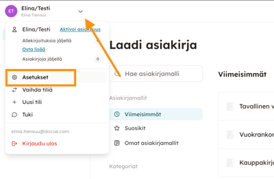 Tilillä voi kerrallaan olla vain tilaukseen sisältyvä määrä asiakirjojen laatijoita. Tilin pääkäyttäjät pääsevät muokkaamaan laatimisoikeuksia Docue-tilin asetuksista.