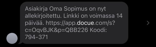 Allekirjoittamisen jälkeen olet saanut sähköpostitse tai tekstiviestitse linkin, jota kautta pääset lataamaan asiakirjan PDF-muodossa haluamallesi laitteelle. Asiakirjan valmistumisen jälkeen sinulla on 14 vuorokautta aikaa ladata asiakirja. Tämän jälkeen latauslinkki vanhenee tietoturvasyistä.
