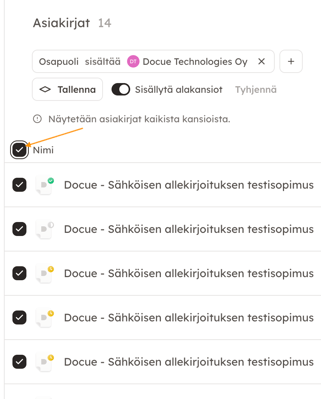 Suodata asiakirjat "Osapuoli" suodattimen avulla.