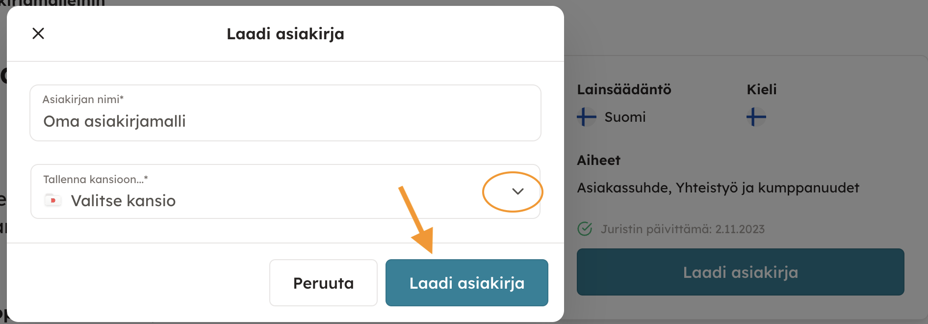 Tässä vaiheessa pääset myös lisäämään lisätietoja ja metatietoja asiakirjalle, mikä helpottaa asiakirjojen arkistointia, suodattamista ja etsimistä arkistosta.