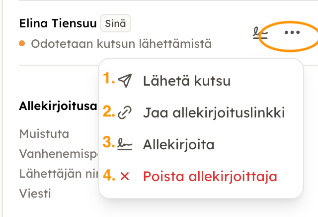 Tallentamaan allekirjoituslinkin ja jakamaan sen haluamaasi reittiä pitkin osapuolelle.