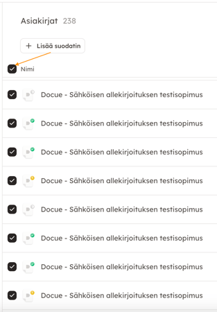 Voit klikata joko yksitellen tietyt asiakirjat jotka haluat siirtää (ks. alla oleva kuva).