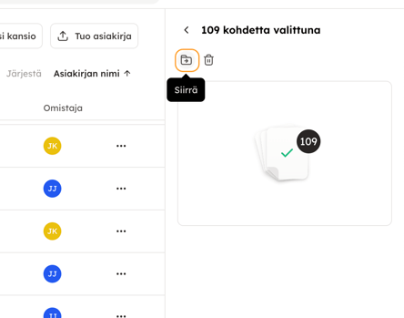 Tämän jälkeen saat siirrettyä asiakirjat haluamasi kansioon valitsemalla "Siirrä".
