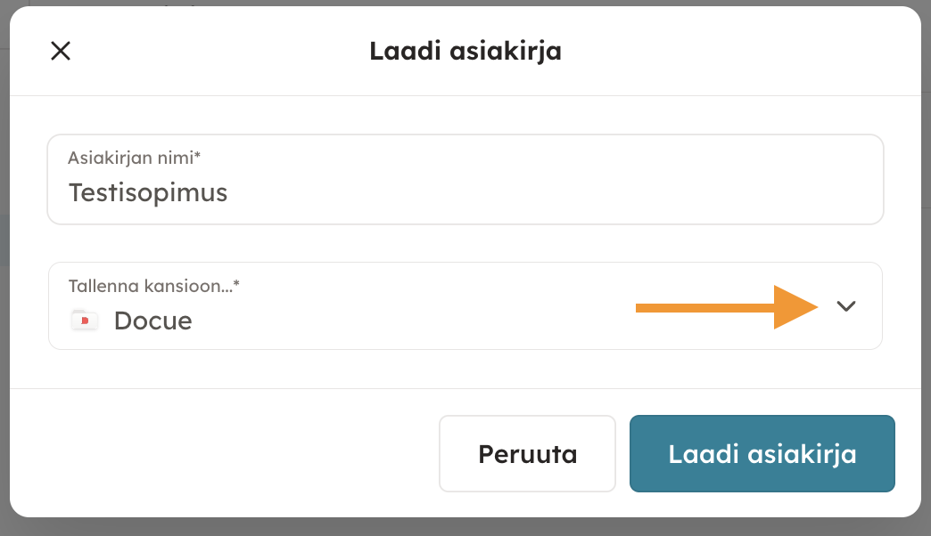 Jokainen Docue Drivessä laadittu asiakirja on mahdollista tallentaa kansioon. Pääkäyttäjillä on oikeus tallentaa asiakirjoja jokaiseen tilin kansioon. Käyttäjät voivat tallentaa asiakirjoja vain niihin kansioihin, joihin heillä on oikeudet.
