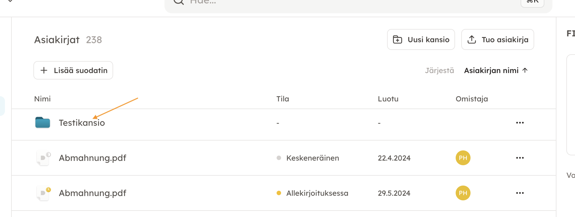Voit joko yksitellen valita kaikki haluamasi asiakirjat klikkaamalla nimen vieressä olevaa ruutua