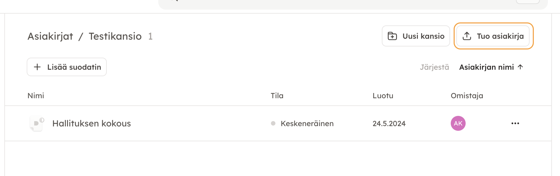 2. Tämän jälkeen klikkaa "Tuo asiakirja".